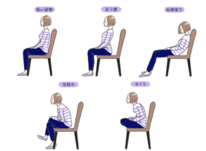 座り姿勢の崩れは、肩こりや腰痛だけでなく、体の不調全体につながる可能性があります。